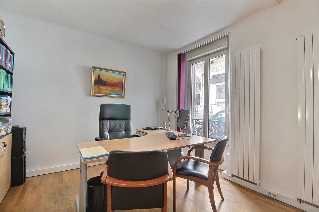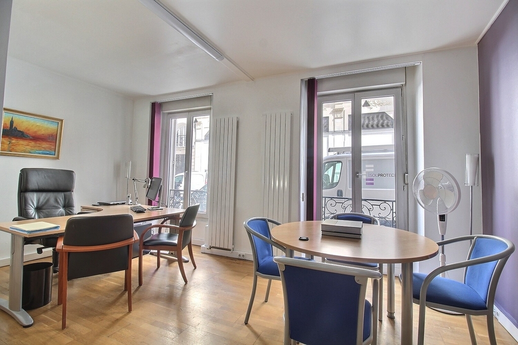 - Surface aménagée en un accueil, trois bureaux, un espace ouvert, deux sanitaires